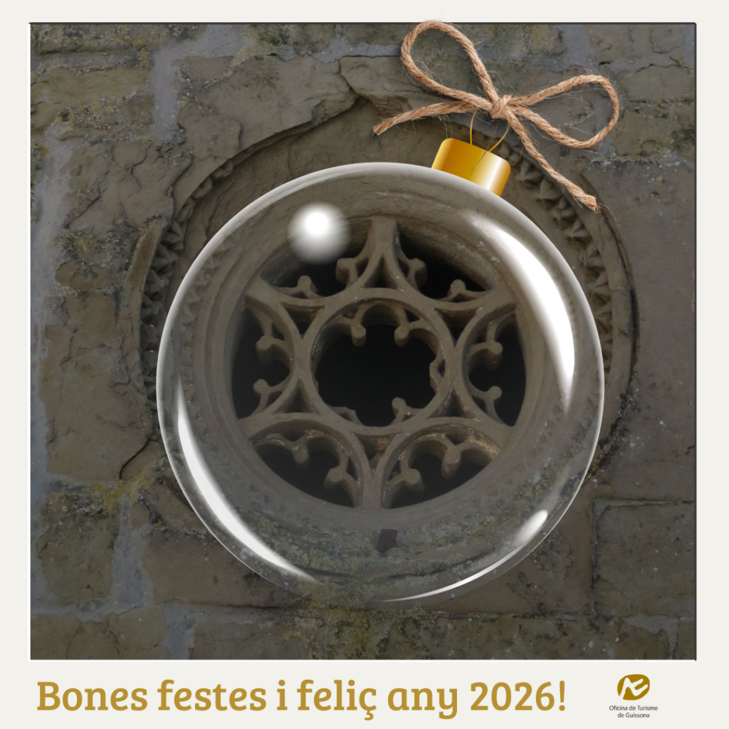 Des del municipi de Guissona us desitgem unes bones festes i un venturós any 2026, carregat de turisme respectuós, sostenible i de proximitat. Imatge: rosassa de l’església de Sant Miquel de Guarda-si-venes (T.M. Guissona)