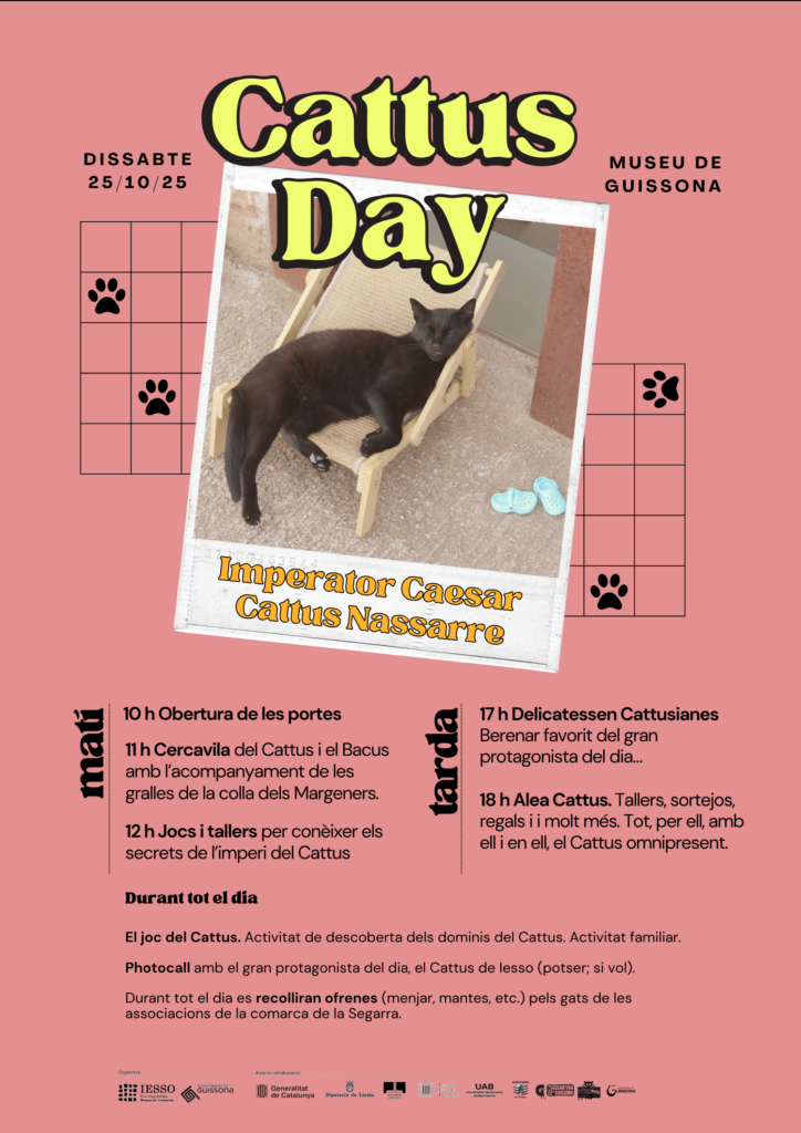 La jornada del 25 d’octubre acollirà una nova edició del Cattus Day, amb cercavila, tallers, jocs, berenar, sortejos i altres sorpreses que només podràs descobrir si t’atanses al Museu de Guissona. Descobriu totes les activitats al cartell adjunt. Gaudiu-ne!!