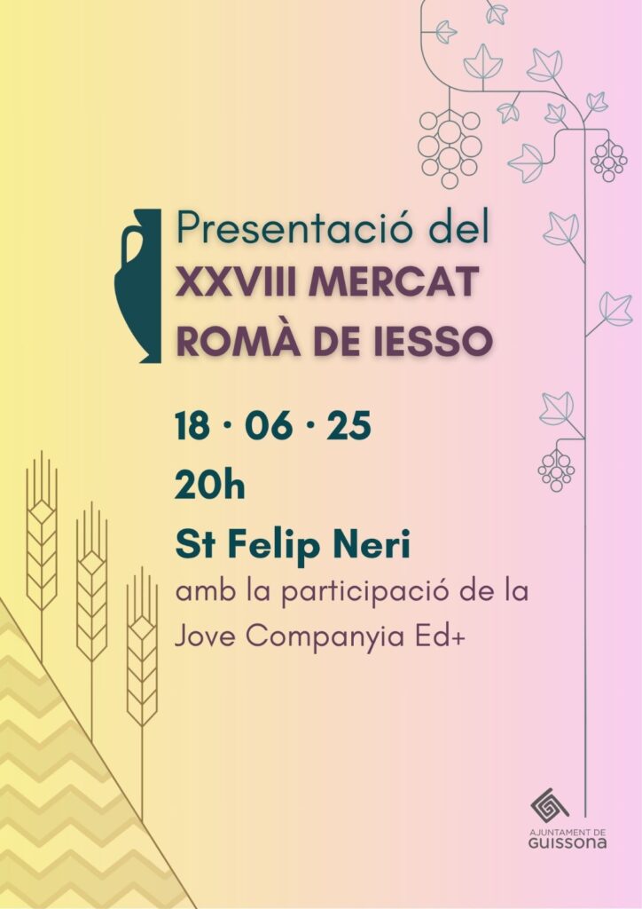 El dimecres 18 de juny a les 20h i a Sant Felip Neri es presentaran els actes dels Capvespres a la Romana així com tota la programació prevista per aquesta nova edició del Mercat Romà de Iesso. La convocatòria és oberta a tothom i comptarà amb la col·laboració de la Jove Companyia Ed+ Ens preparem […]
