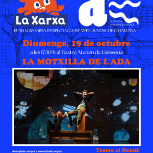 TEATRE MUSICAL: LA MOTXILLA DE L’ADA (Companyia Teatre Al Detall) Premi de la Crítica al Millor espectacle per a públic ... 19 oct. 17:30 - 18:45 Ateneu de Guissona