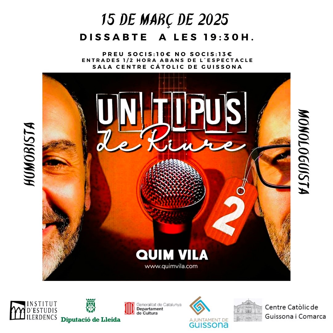 HUMOR: UN TIPUS DE RIURE. MONÒLEG DE QUIM VILA + Add to Google Calendar + iCal / Outlook export Date març 15 2025 Expired! Time 19:30 - 20:30 Location Centre catòlic Organizer Centre Catòlic Share this event