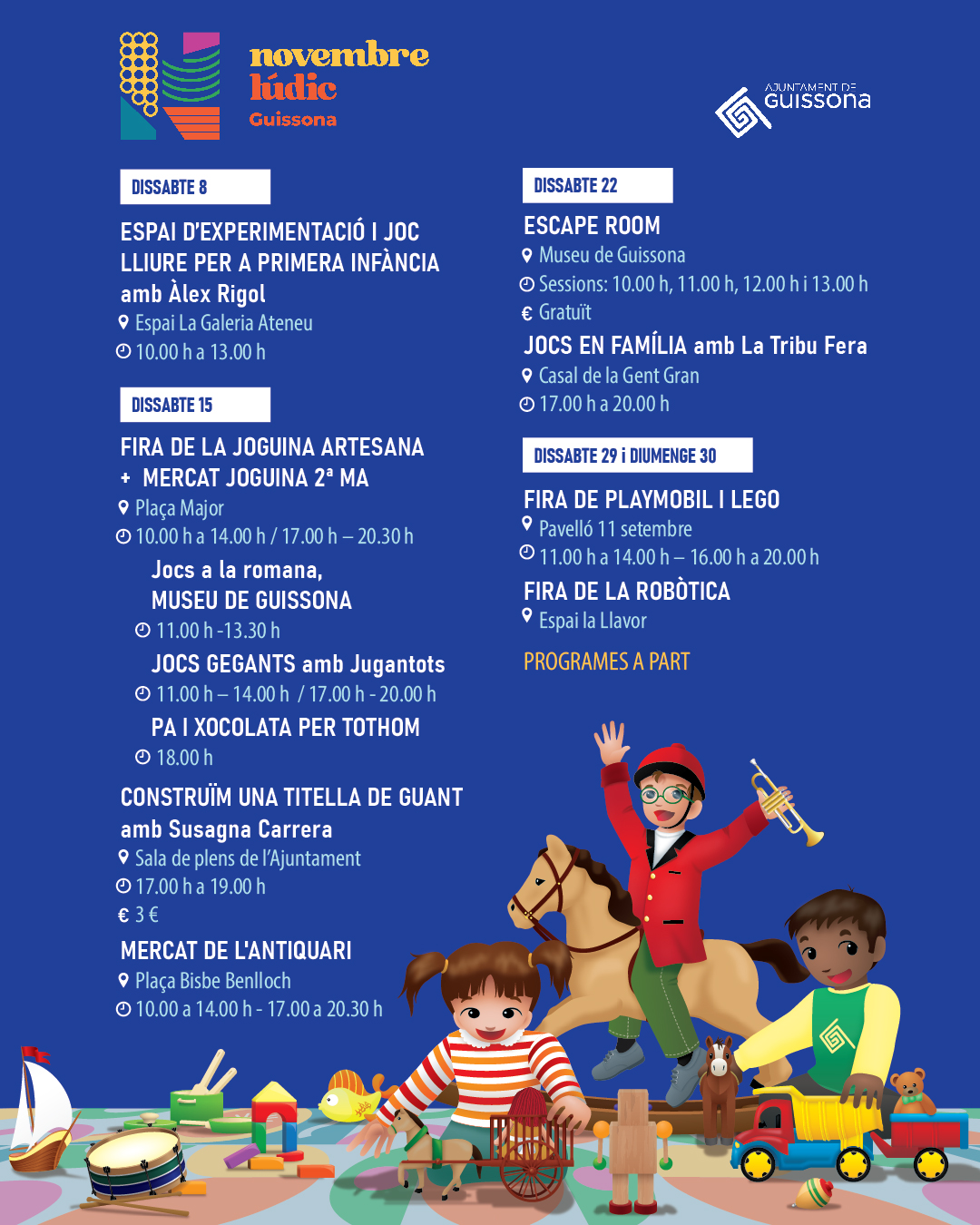 NOVEMBRE LÚDIC + Add to Google Calendar + iCal / Outlook export 00 days 00 hours 00 minutes 00 seconds Date nov. 22 2025 Time All Day Category cultura infants joventut novembre lúdic tallers Organizer Ajuntament de Guissona Share this event