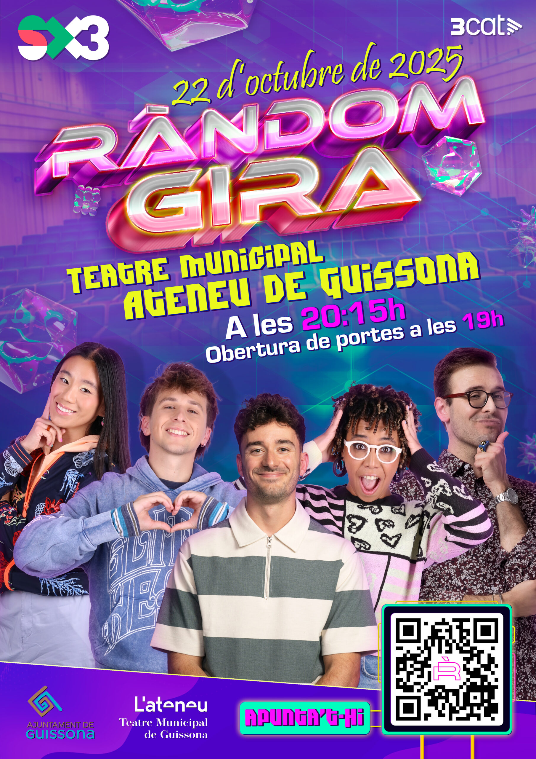 RÀNDOM GIRA A L’ATENEU DE GUISSONA + Add to Google Calendar + iCal / Outlook export 00 days 00 hours 00 minutes 00 seconds Date oct. 22 2025 Time 20:10 - 22:00 Location Ateneu de Guissona Category cultura joventut música Share this event